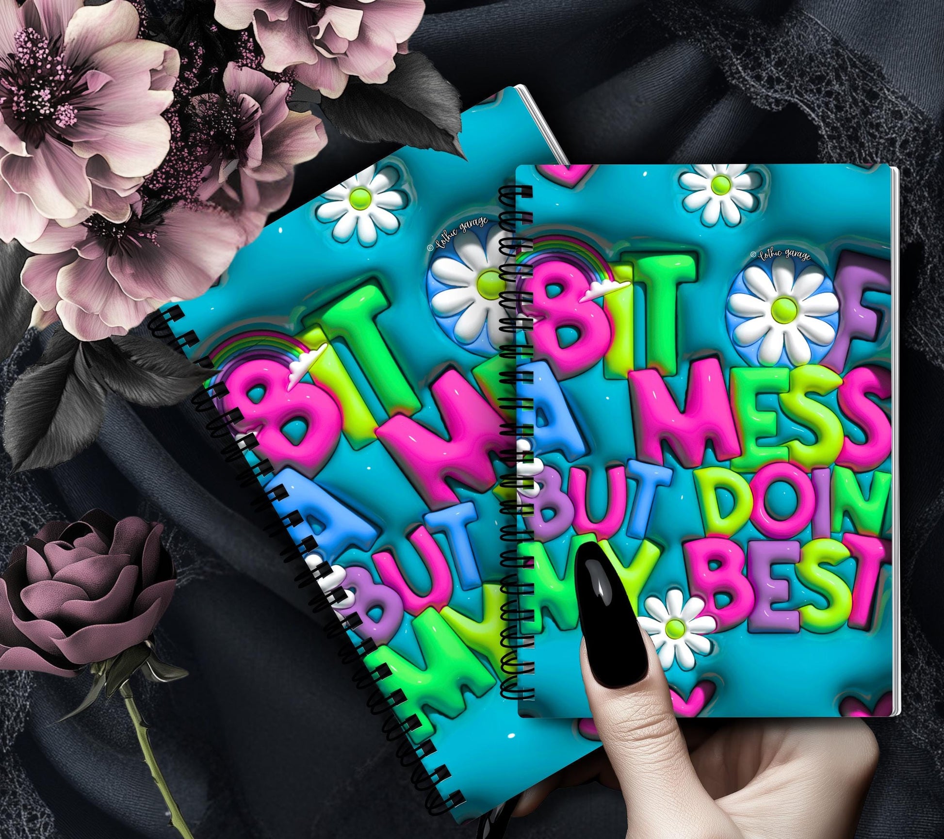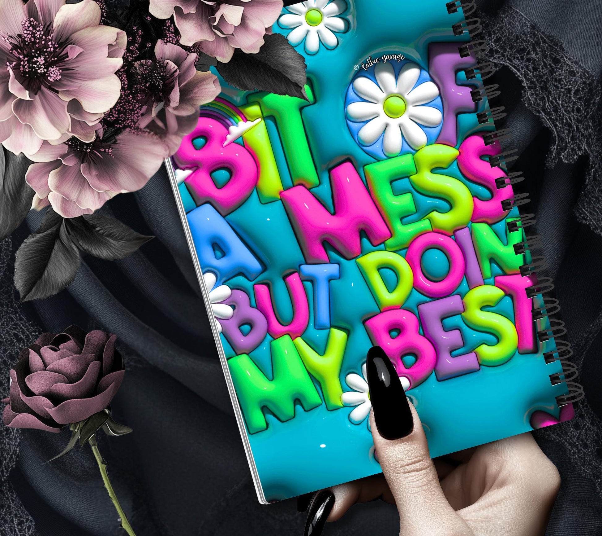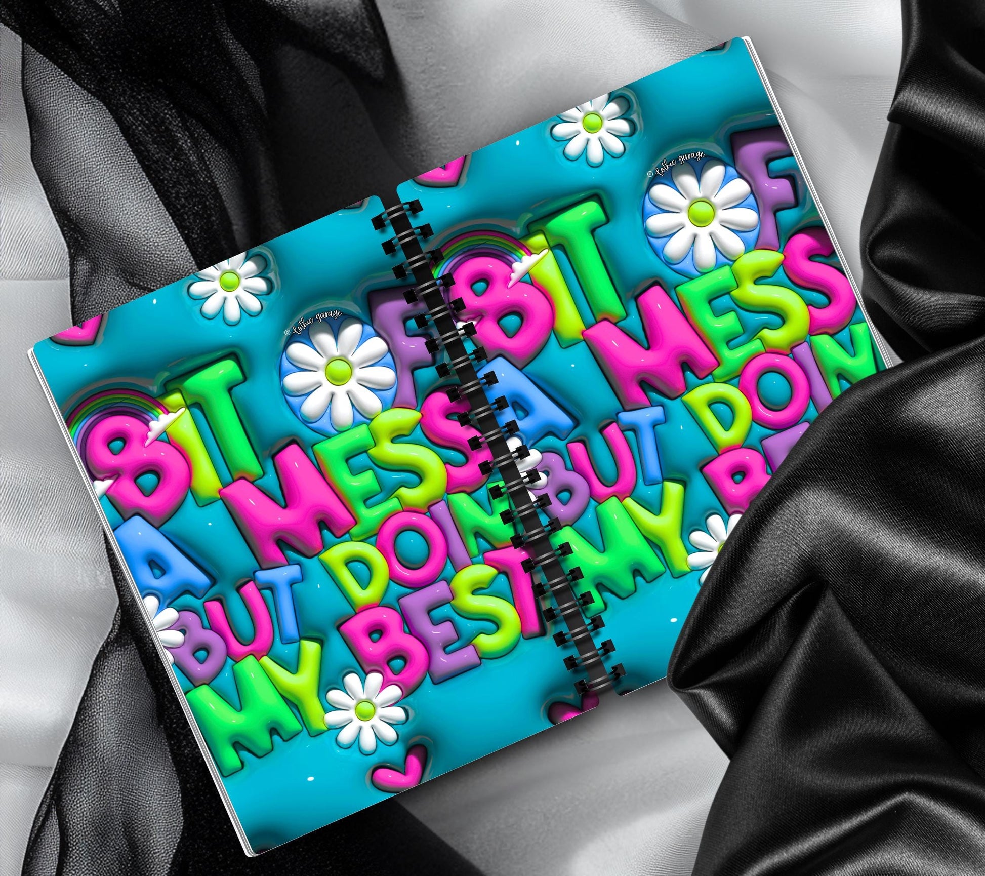 Celebrate love, laughter, and life's little quirks with our Reusable Sticker Book, featuring 3D illustrated hearts, flowers, and even a rainbow, along with the charming saying "A bit of a mess, but doin my best!"