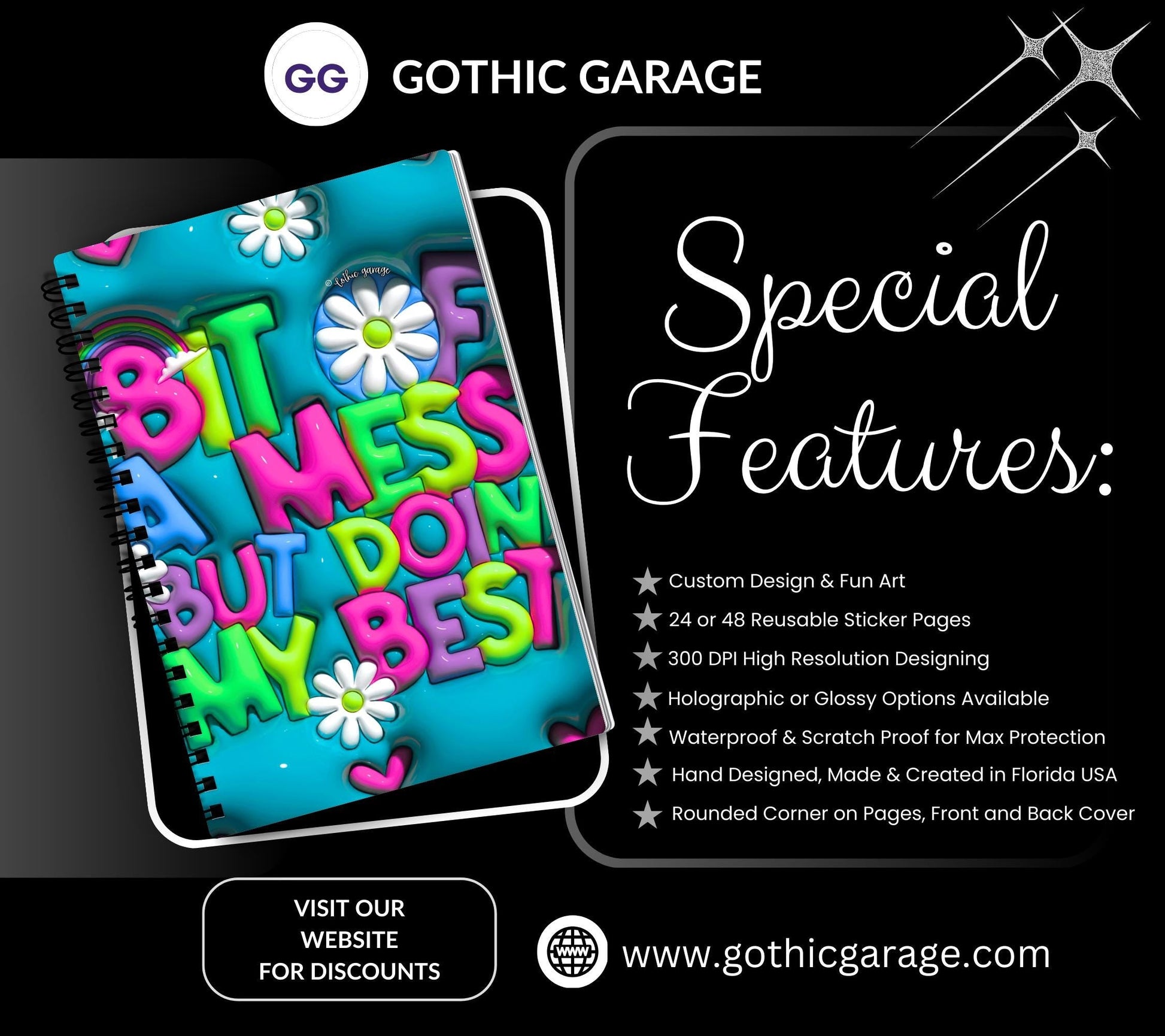 Bit Of A Mess, But Doing My Best Reusable Sticker Book, Perfect Fun Gift to Personalize for Sticker Collectors