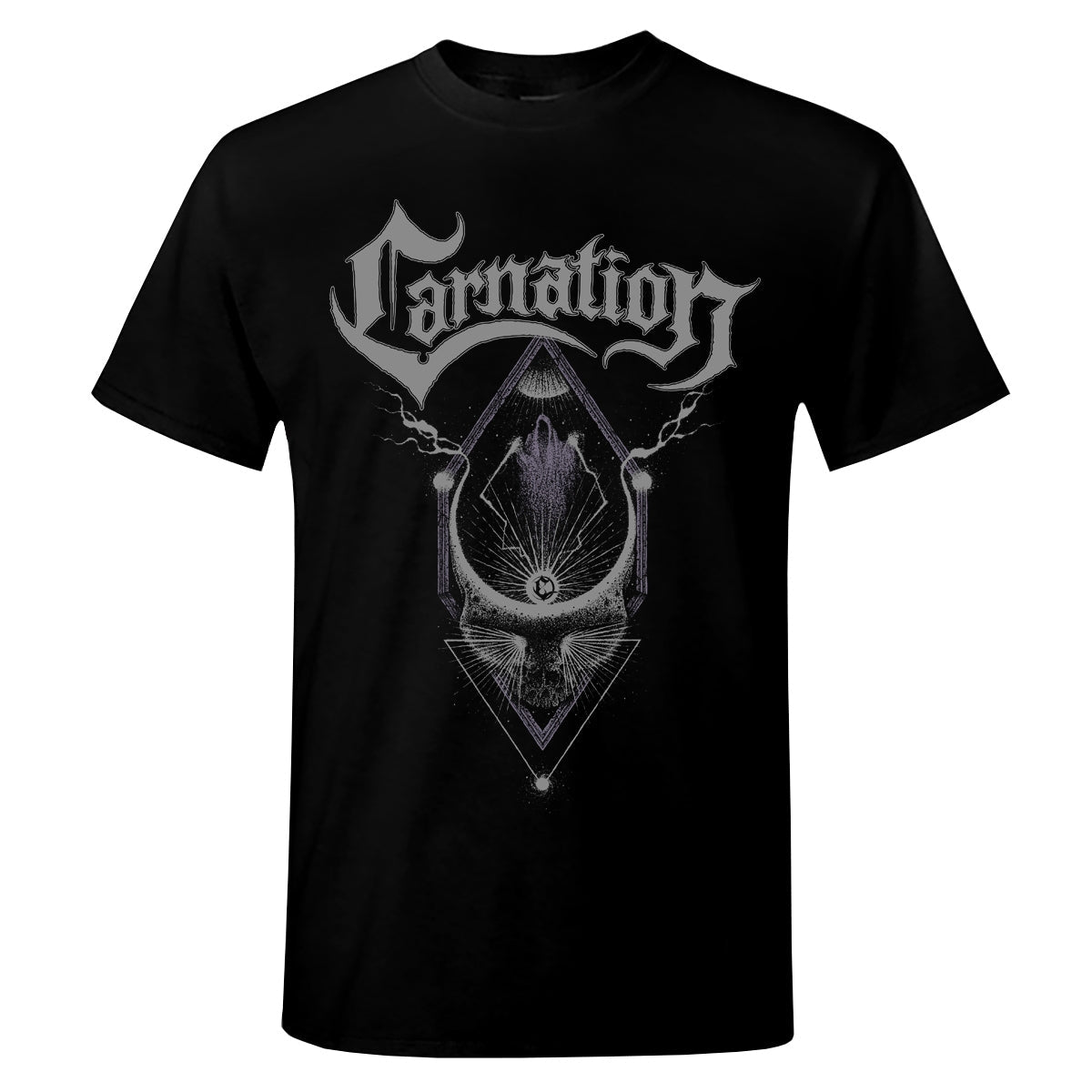 Official Carnation band merch printed on a 100% cotton T-Shirt.