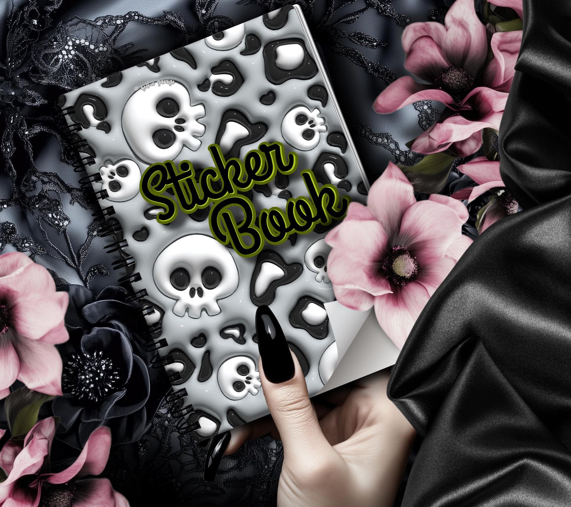 Elevate your sticker game with our Reusable Sticker Book, featuring 3D puffy inflated white skeleton heads and leopard print coming off the page that's bound to catch some attention!