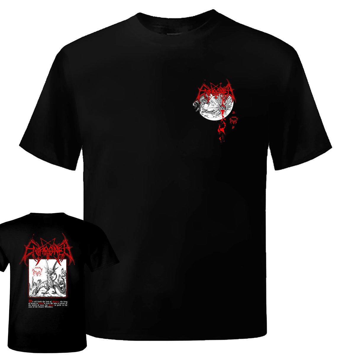 Official Enthroned band merch printed on 100% cotton.