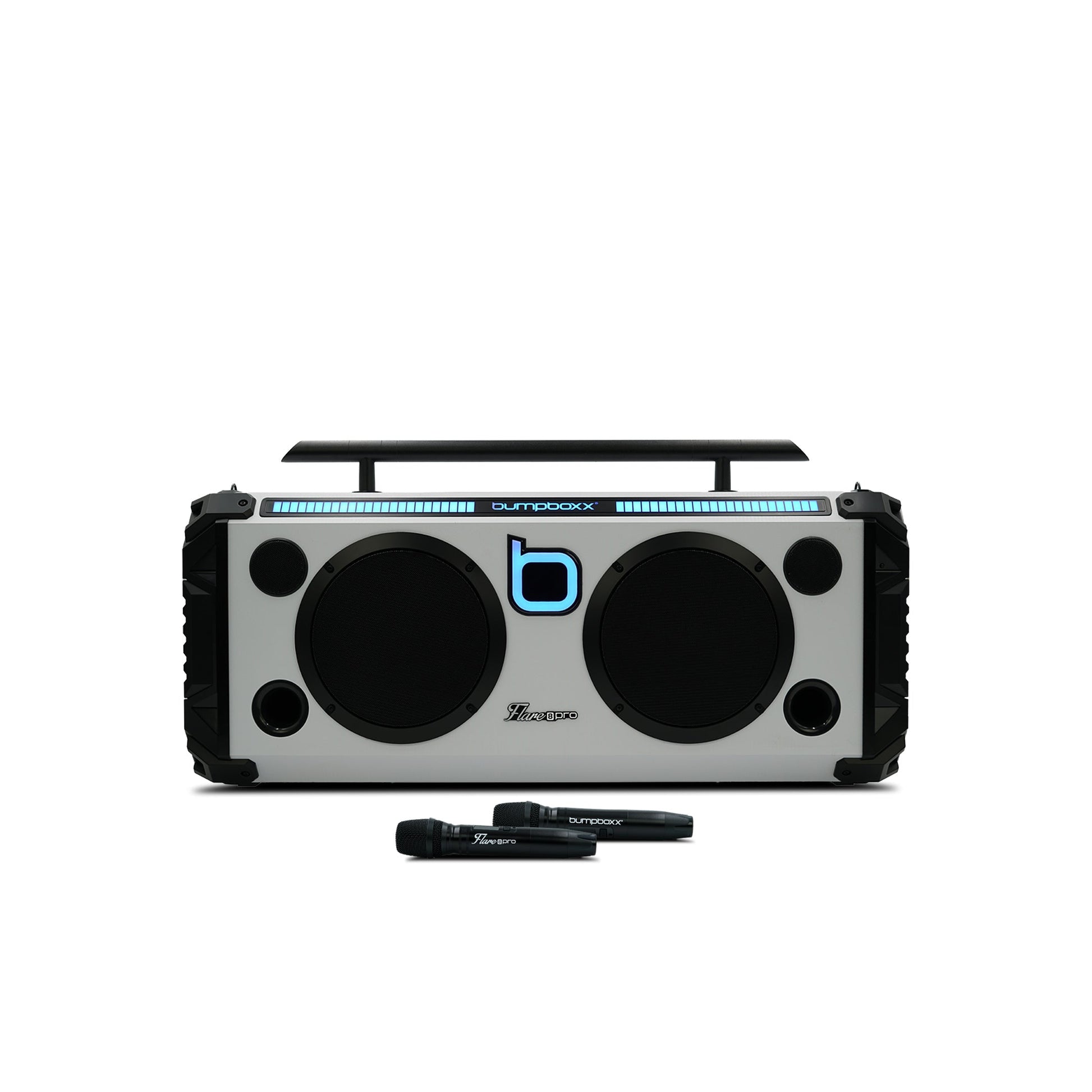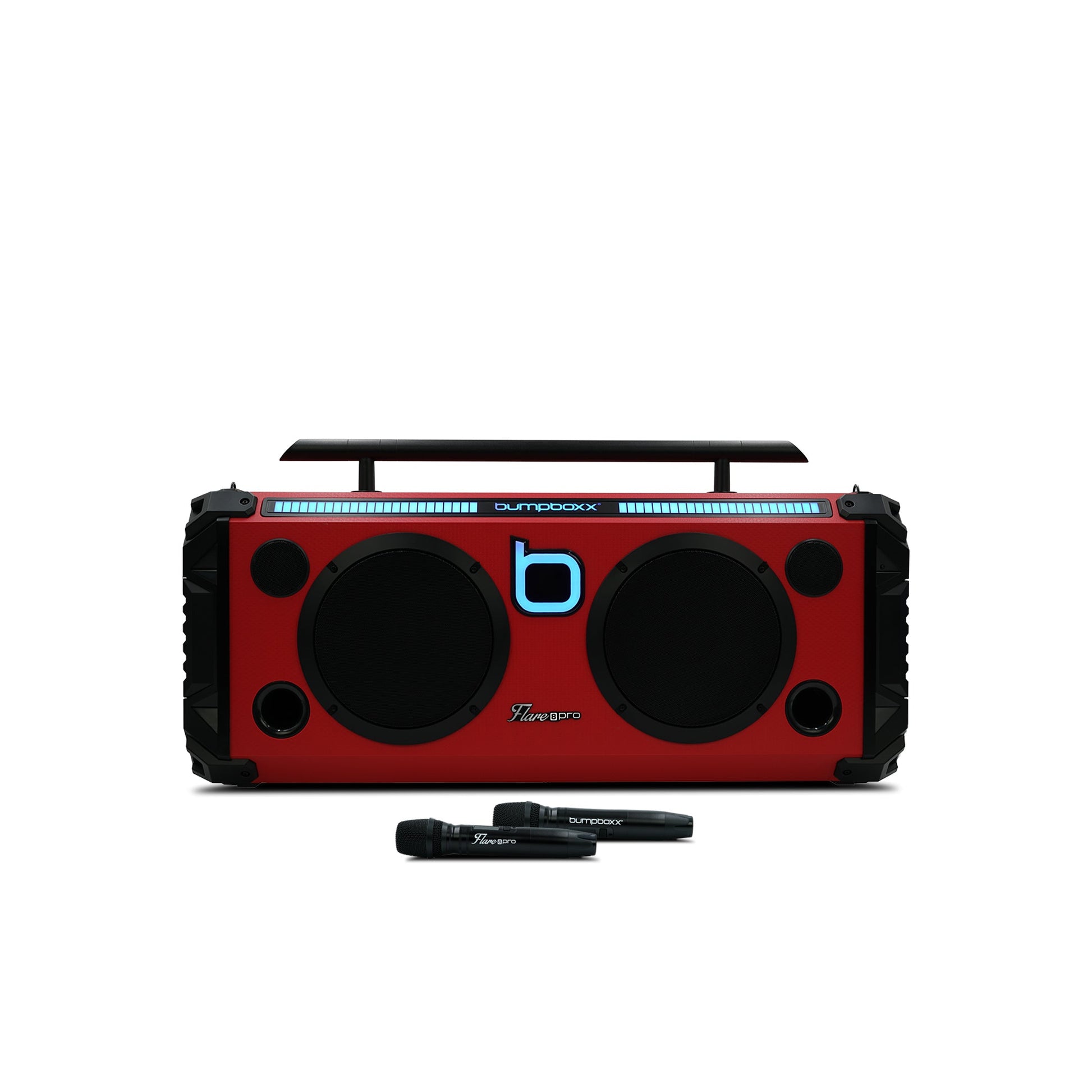 Introducing the Flare8 Pro, the ultimate party powerhouse from Bumpboxx. The Flare8 Pro turns any space into an audio arena with 400 watts of power and a color changing LED display and "B" icon. Want to sing along with a friend? Now you can with two included wireless microphones. It's not just a speaker, it's an experience waiting to be unleashed.