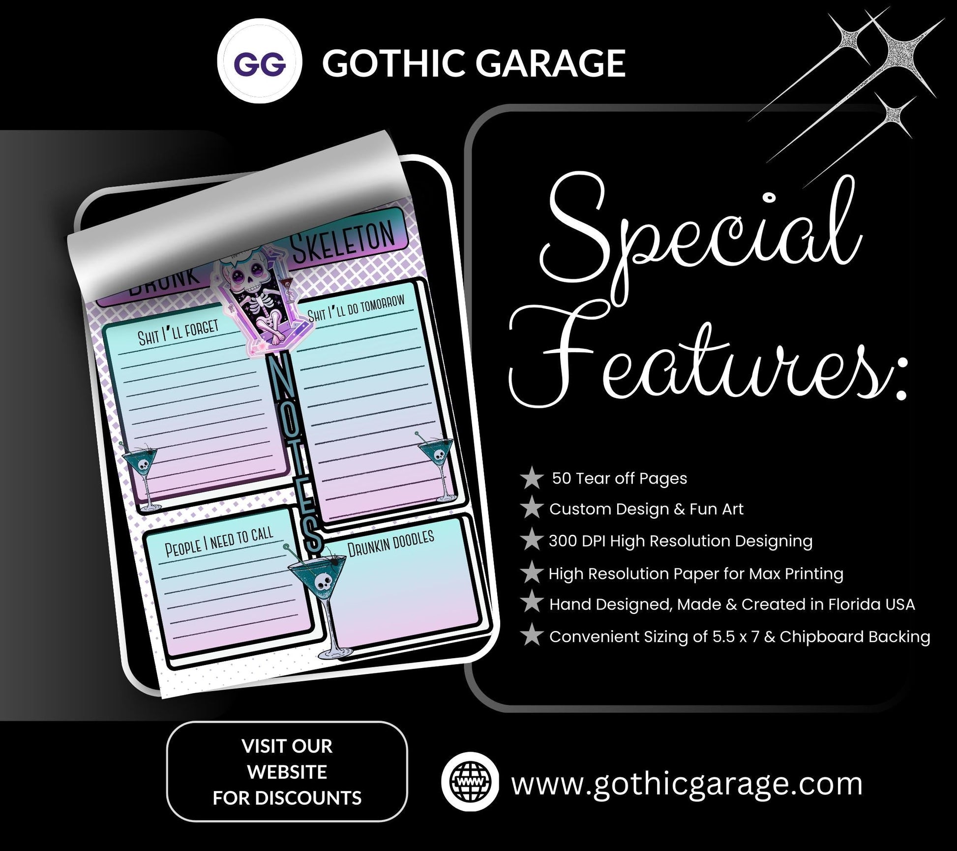 Gothic Kawaii Drunk Skeleton Notepad: Task Management Stationery