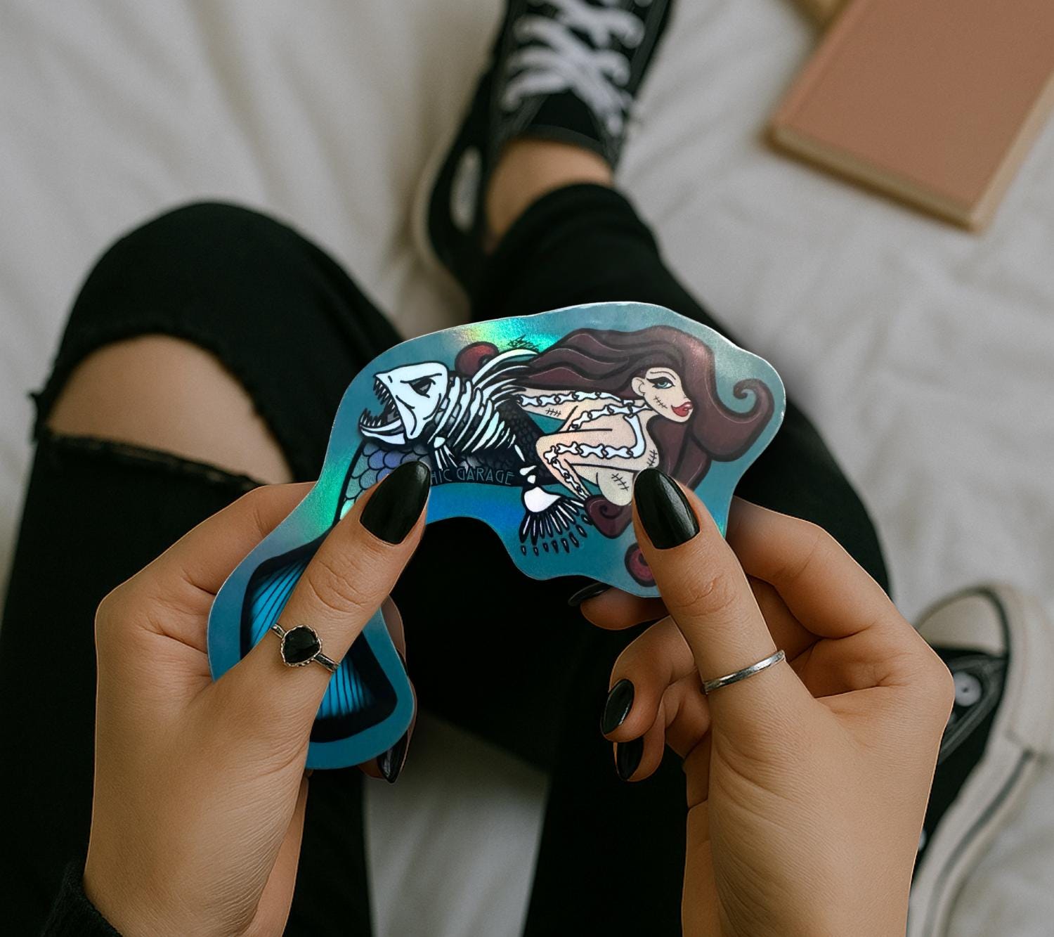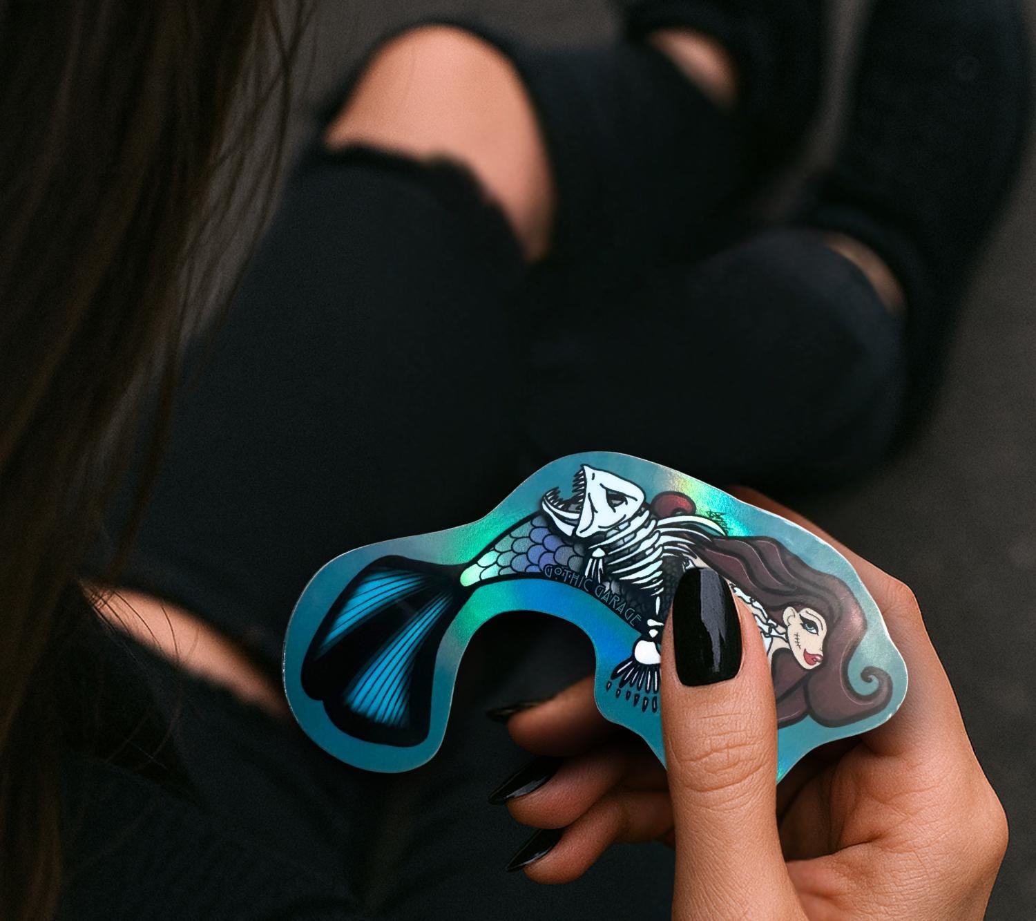 Gothic Nude Mermaid Die Cut Waterproof Sticker—Dive deep into haunting waters with this mesmerizing dark fantasy sticker!