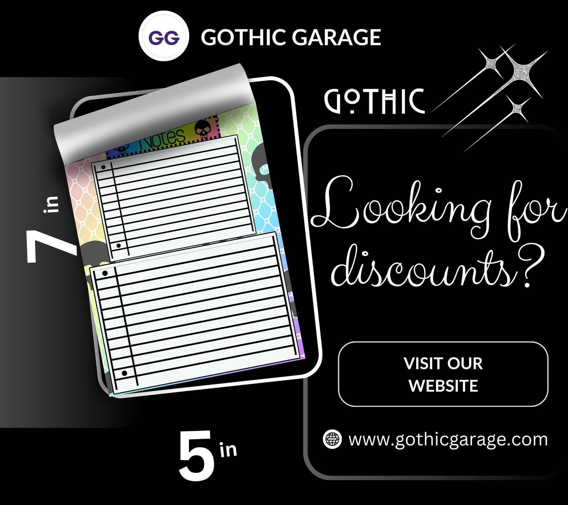 Gothic Rainbow Skull Notepad: Lined Goth Stationery