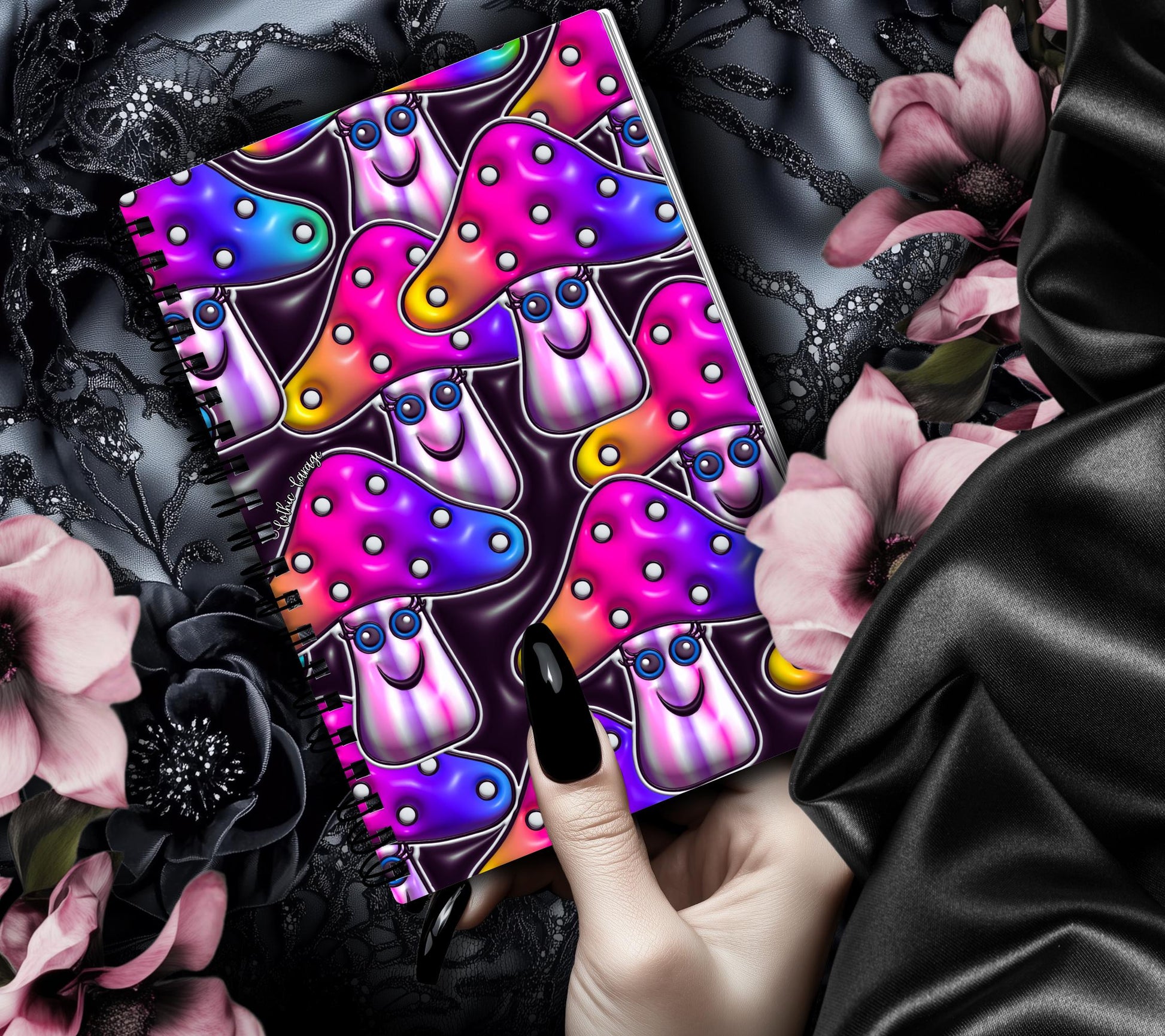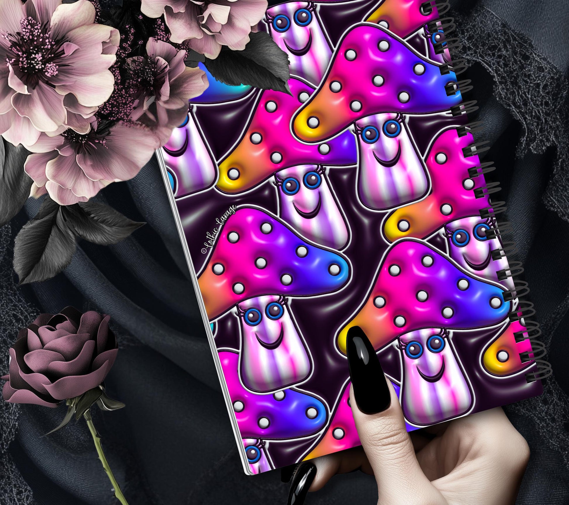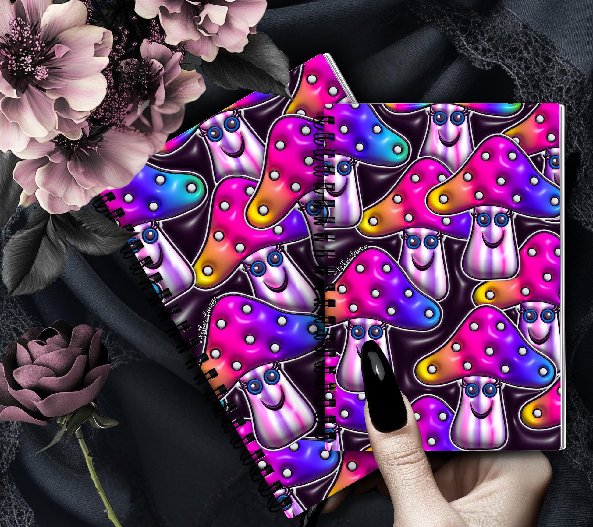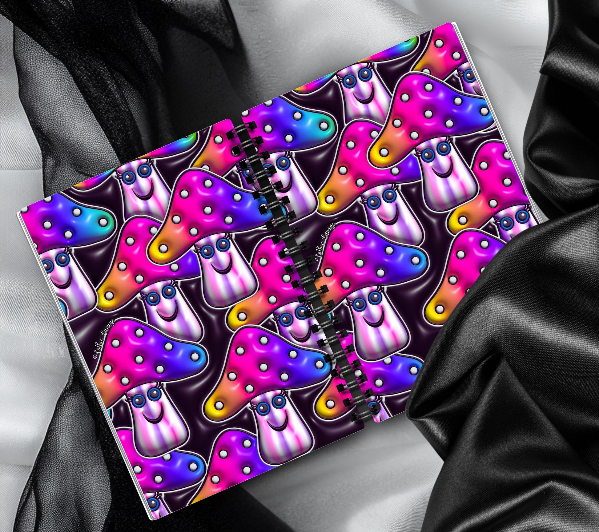 - 24 or 48 double-sided pages bursting with 3D illustrated rainbow happy mushrooms – a trip to sticker euphoria!