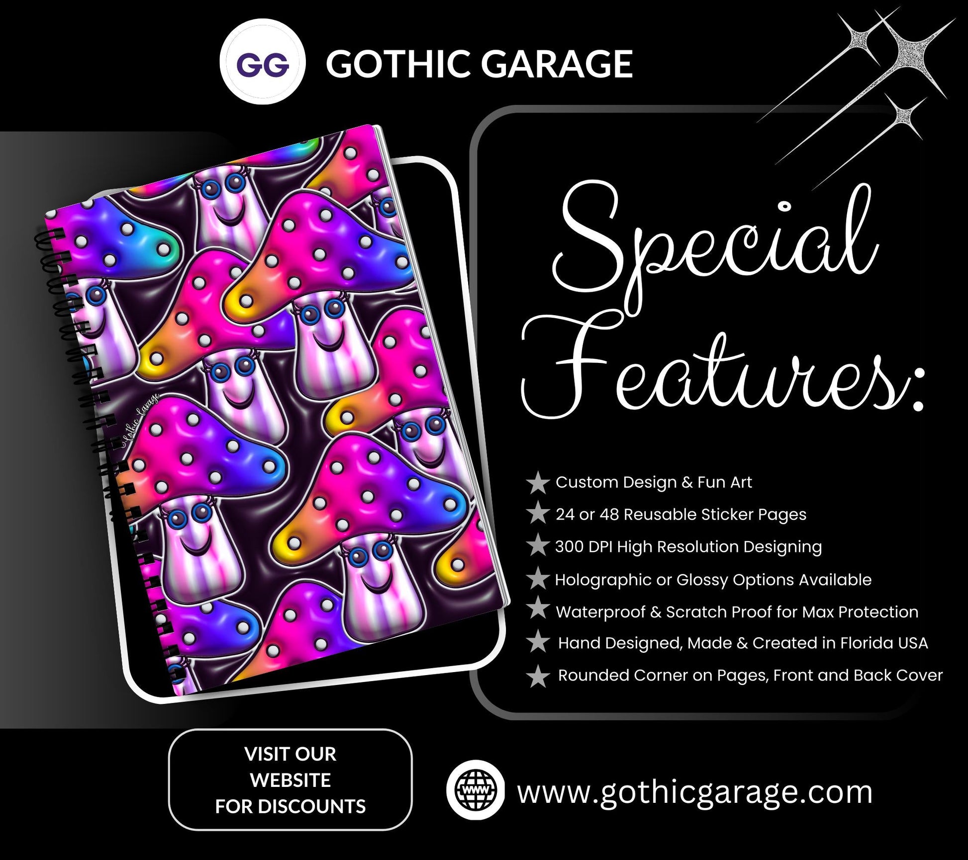 Happy Mushrooms Reusable Sticker Book, Perfect Gift to Personalize, Kids and Adult Friendly Sticker Organizer