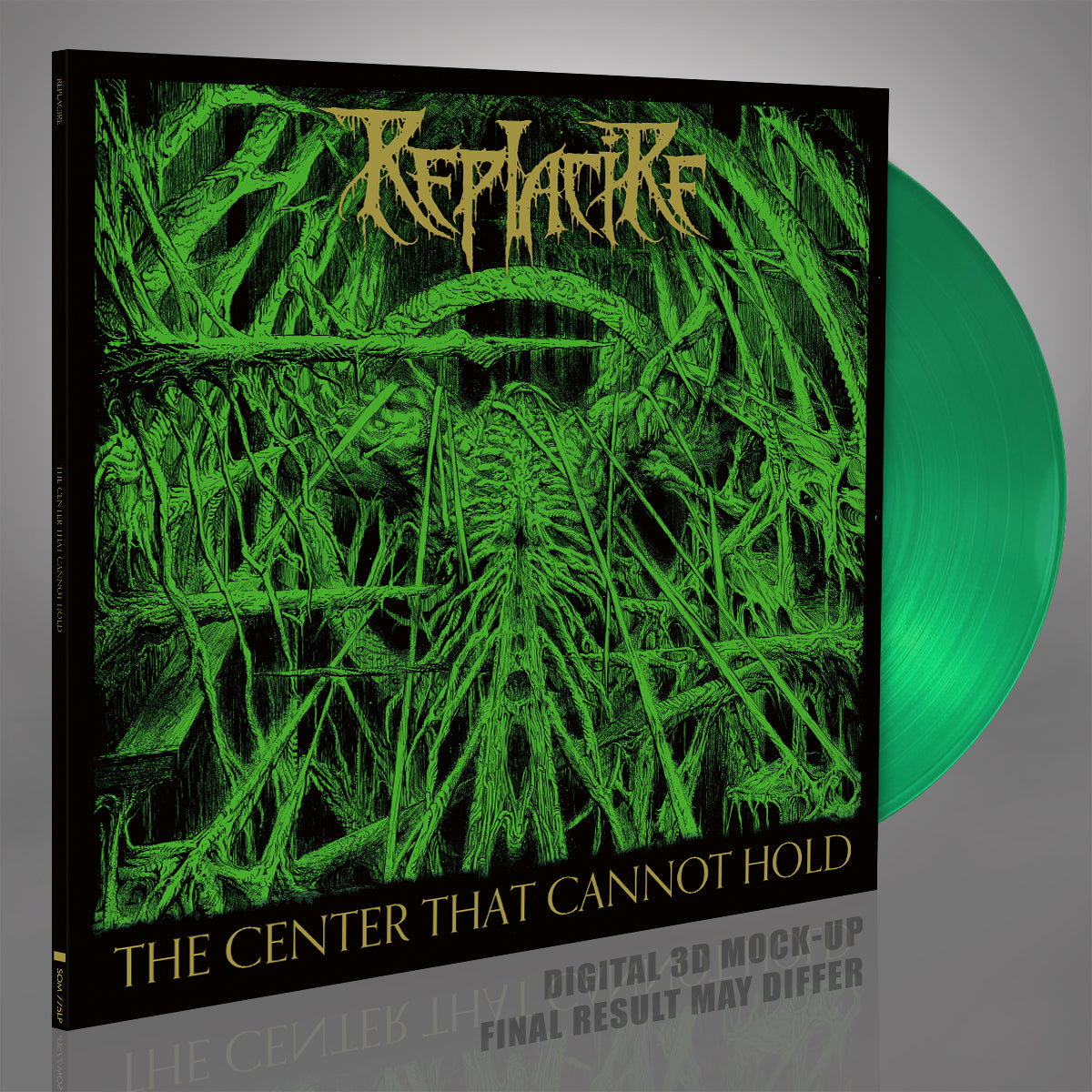 Transparent green 12" vinyl (33rpm) in deluxe gatefold with gold Pantone print.